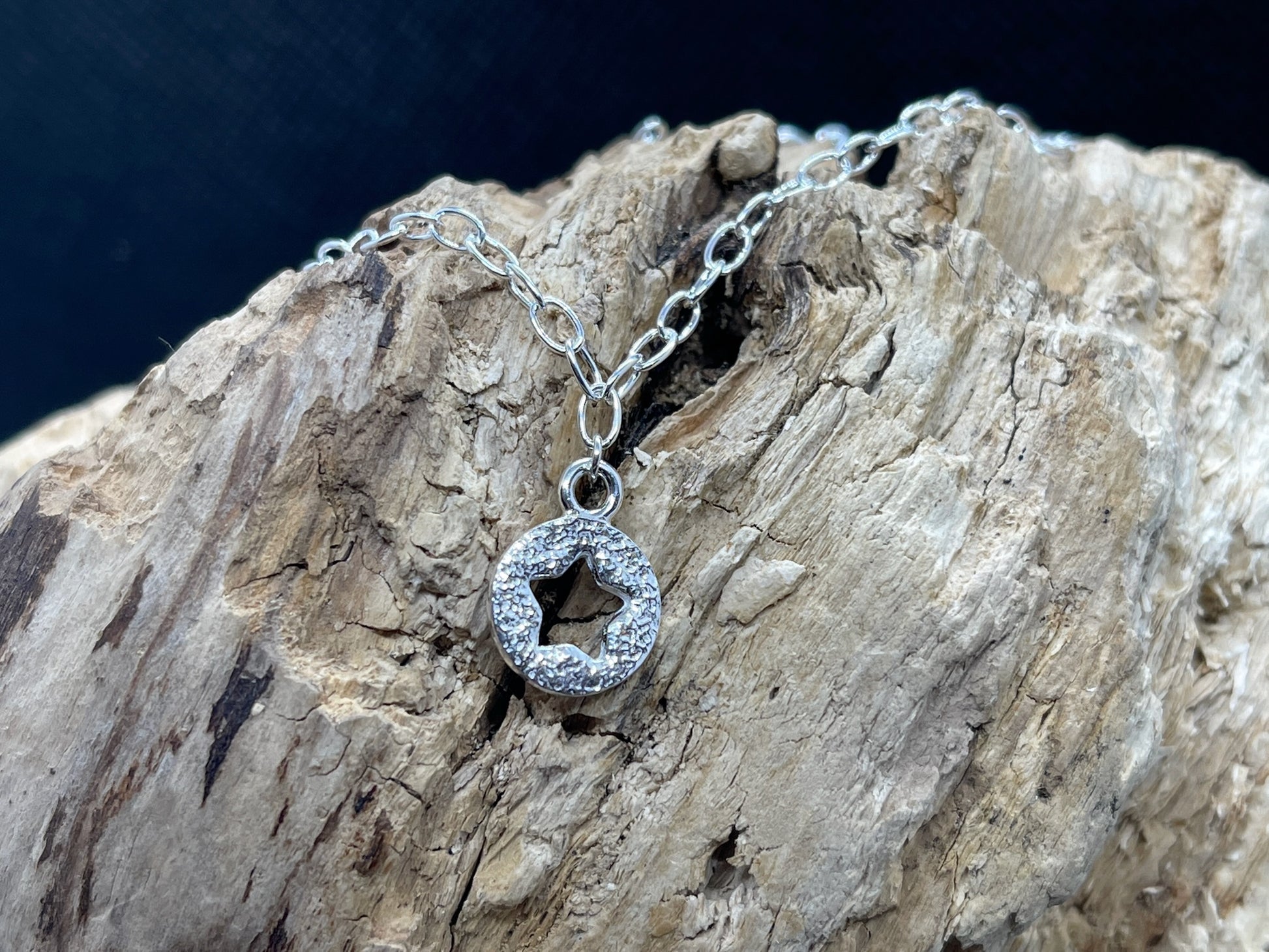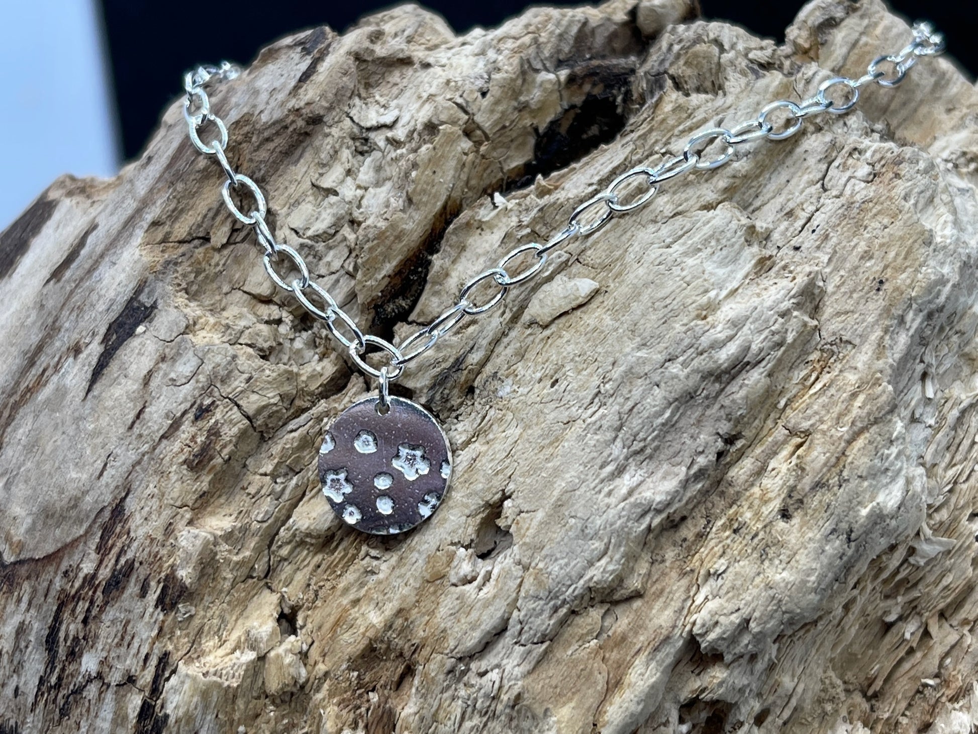 The Charm hangs from a Sterling Silver Cable Link Chain, available in a number of sizes.