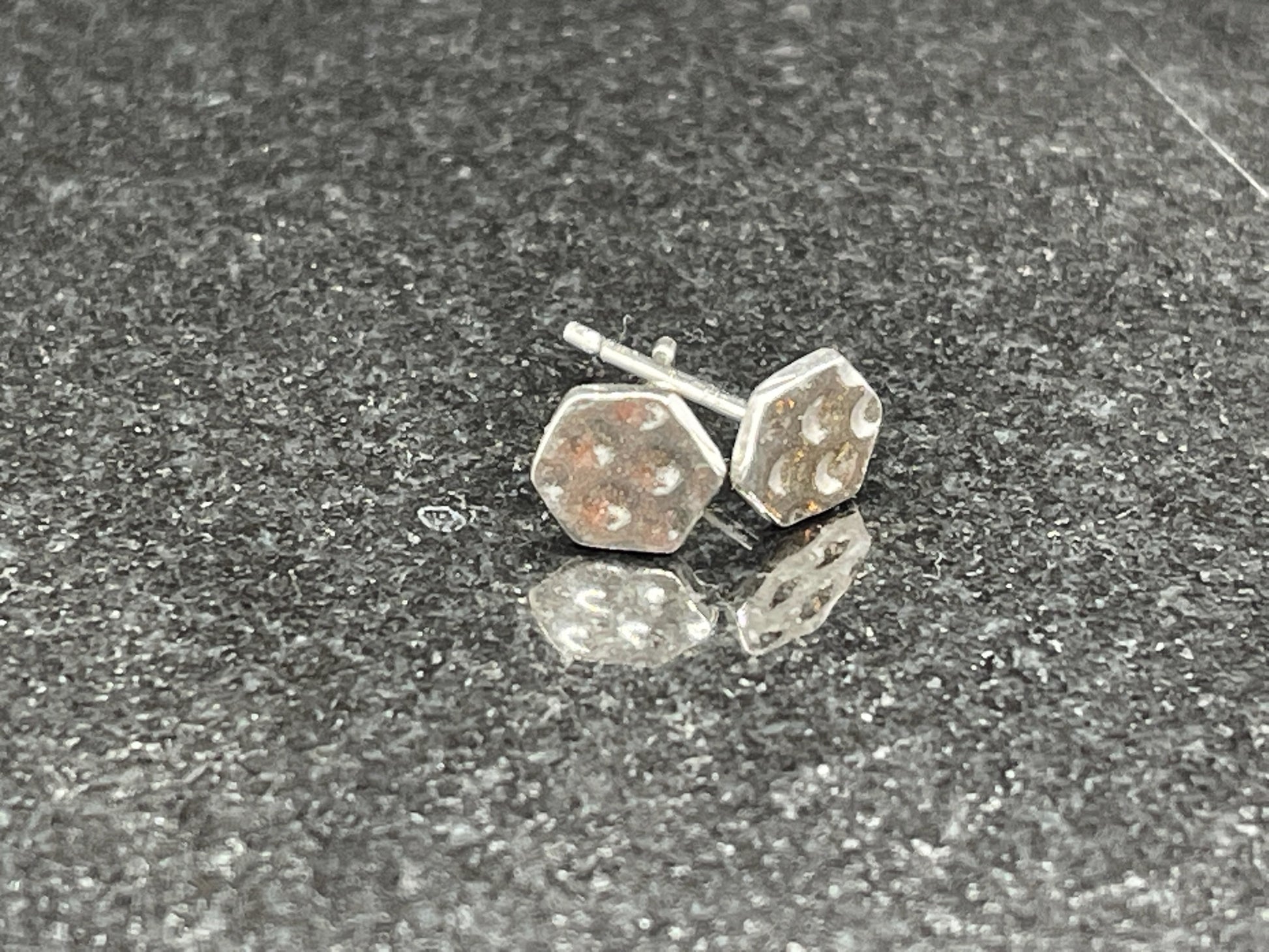 I have used sterling silver metal clay to create these Studs, which measure between 7mm and 9mm in size.