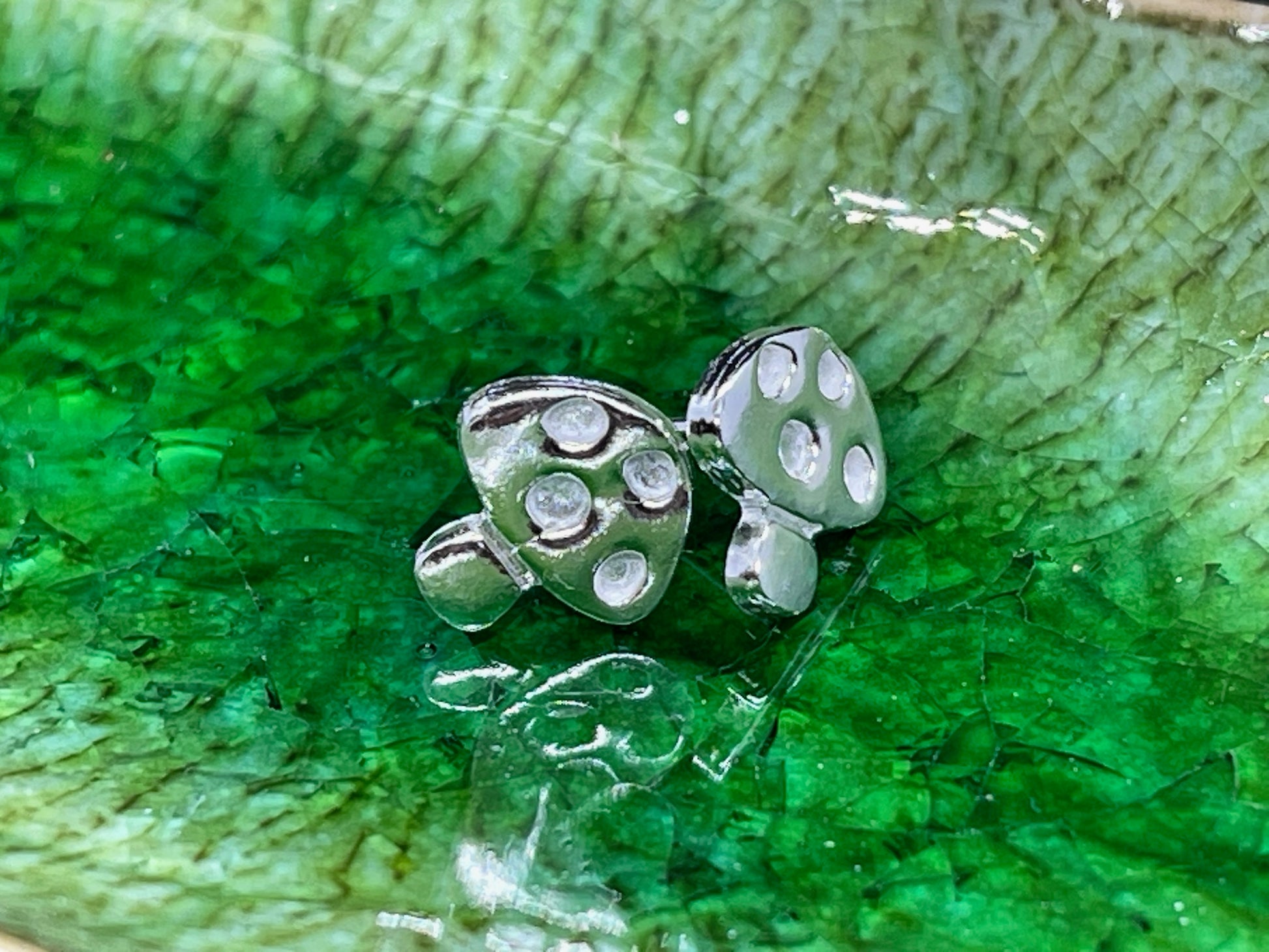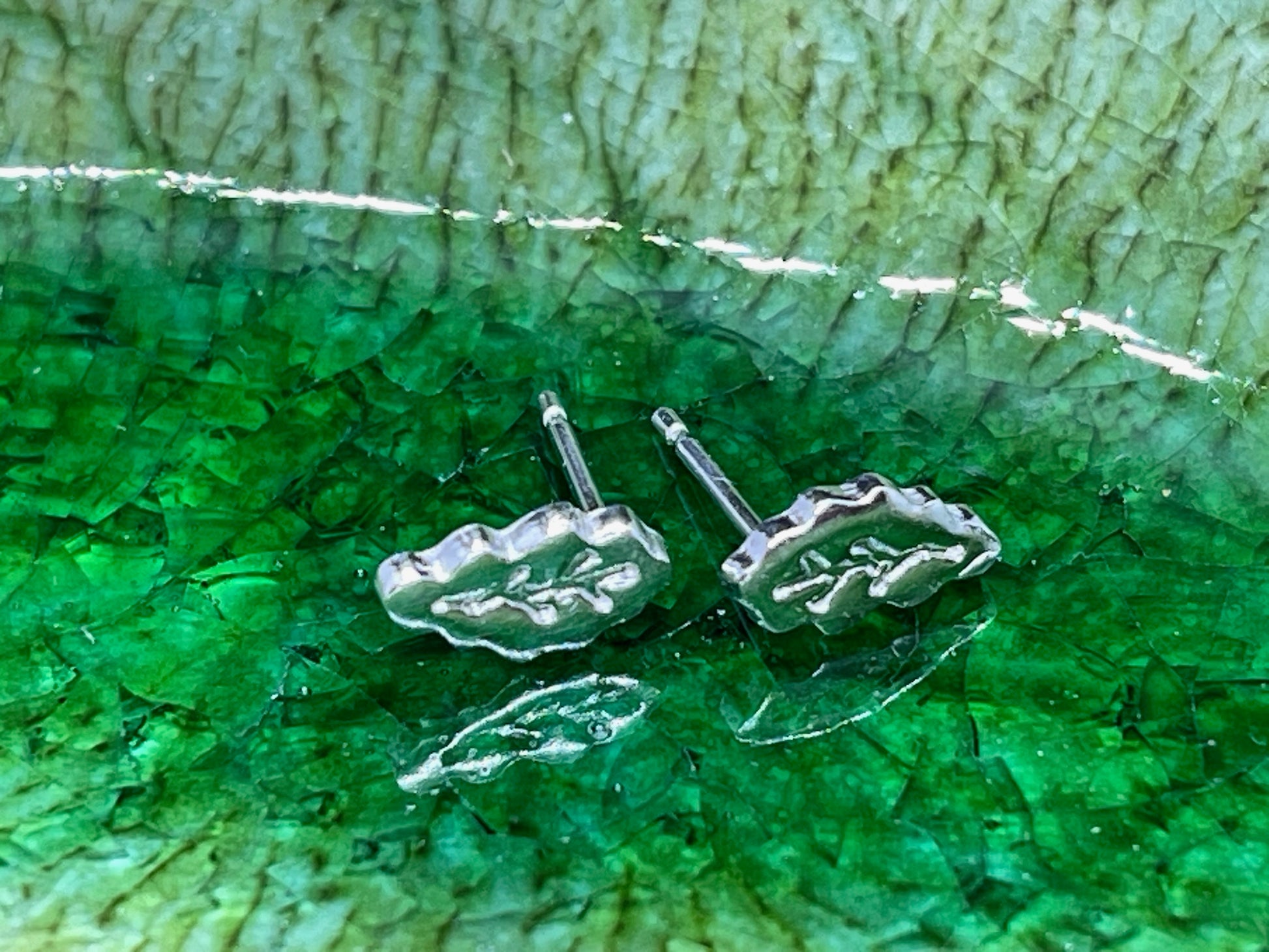 I have used sterling silver metal clay to create these Studs, which measure between 9 and 12 mm in size.